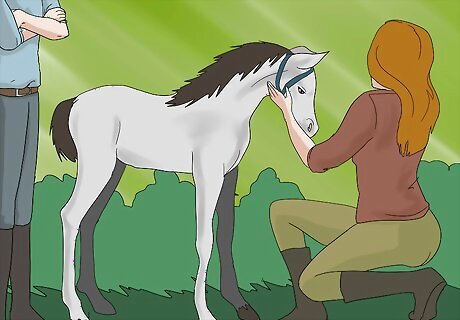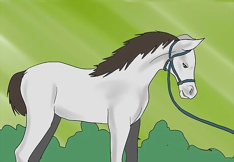 Introduce the halter to your foal when he is anywhere from three days old to a week.