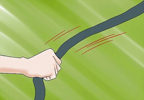 Do not make one continuous pull, or your foal will immediately resist. Instead, always use short tugs. If your foal does not move forward, give the command again and a short tug. Usually the foal will get the idea. Once the foal is moving, walk around the pen with your helper right behind the foal, to give him a tap if he stops. When pulling his head to the side to turn, do not give one continuous pull; remember, always short tugs, and stop immediately when he obeys. After around ten minutes of leading, stop and take the halter off and praise your foal. Only stop on a good note, not if your foal has just stopped on his own, or if he had just resisted and pulled against you. If he does this, correct him by giving him a tug and the command to keep going. It is best to give your foal two lessons a day, ten minutes long each. Make sure to stop before your foal starts to get bored, so he doesn't act up. Foals are young, and have very short attention spans. A bored foal will resist to whatever you want to teach him, and he might react by nipping, pulling against you, or kicking. Keep lessons at 10 minutes or less to keep this from happening. Many short lessons are way better then one long lesson. After your foal will easily lead without having a helper behind to encourage him, and when he will listen to your commands immediately, you have successfully trained your foal to lead! Remember to have lots of patience, and most of all, enjoy your foal!
