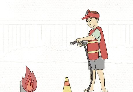 Handle the topic carefully. While you don't want to scare your child or make the possibilities sound like a scary movie, you do want to make sure they know what dangers fire can bring. Talk about general safety often; you can talk one-on-one in discussions about what to do in emergencies, and you can bring the issues up more casually too, as you talk about movies, games, and make-believe. Make sure your kids know about police officers and firefighters. By focusing on these fun, child-friendly icons, you can reinforce the general ideas about safety. When you and your child use toys or props to "play firefighter", you're actually building their understanding of fire safety, which is a good thing!