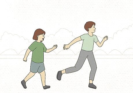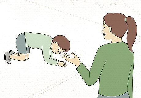 Play some games. Get your kids to run around, crawl on the floor and cover their faces. A popular game kids like is stay low and go.