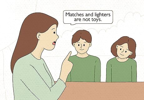 Teach them tips for avoiding fire emergencies. Don't assume they already know something or they cover it at school. Teach your kids facts and safety tips: Matches and lighters are not toys. Wear long sleeves and cover pots in the kitchen, Check that smoke detectors are installed. Change smoke alarm batteries each year. Go to the meeting place when there is a fire.