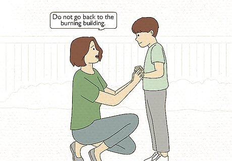 Mix serious discussions and practice with play, too. You want your child to take the topic very seriously, but you also don't want to scare them. Anything practiced in play has the power to become "learned" and habitual; if you practice escape routes around your house as part of a firefighter game, they just might use those routes again in the event of a real emergency.