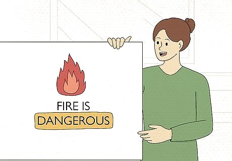 Understand the danger. Many children don't know how to react to fires, and may even hide from them, without getting out to safety. But if you teach them basic fire facts and tell them gently what to do to be safe, they will be able to protect themselves. Here are some interesting facts: More than half of fire-related deaths happen to children under four years old. Fire injuries increase in adolescence, as being a teenager is a time where risky behaviour increases. Boys are more likely to be injured from fires than girls are, as boys are more likely to take part in risky activities.