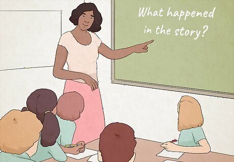 Introduce questions about the text. The right questions will focus your class on the specifics that they need. Focus on attention to detail, main characters, problems faced, and even vocabulary words. An easy question to ask is “What’s the problem?” Most main characters face some kind of issue that they have to fix or solve. Another good question to ask is “What happened in the story?”