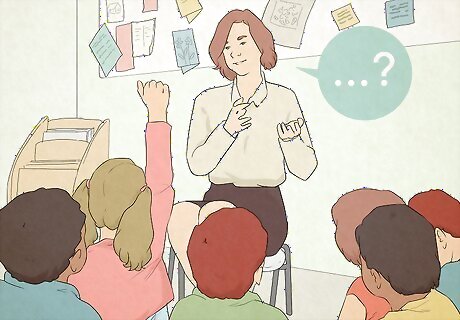Have your students write the answers to questions. First and second-graders are usually ready to write down answers instead of just saying them out loud. If you think your kids are ready, tell them to jot down their answers on a piece of paper instead of raising their hands. If they aren’t, just discuss your answers as a class. In general, most kids are ready to write down answers when they’re half-way through first grade.