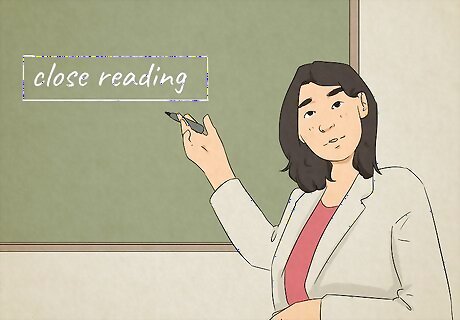 Explain why you would use close reading. Experts note that explaining why you are teaching close reading helps students get a grasp on it much sooner. Tell your students that the point of close reading is to get a deeper understanding of the story and what the author is trying to say. Let them know that when they close read, they’ll pay more attention and have more to say about the story. You might say something like, “Today we’re going to read a story, but we’re going to read it closely. What that means is we’re going to think about the characters and the storyline, and then we’ll answer some questions about the book at the end.”