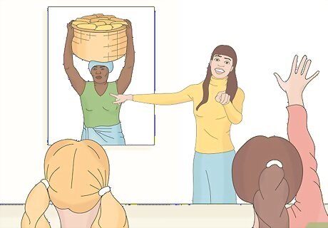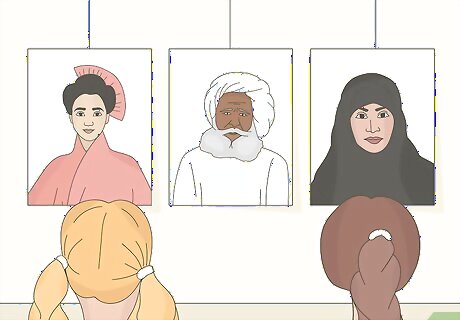 Describe and celebrate some of the ways that people are different. To help someone learn to be empathic and tolerant of other cultures, it can be helpful for you to first take some time to identify and explain some of the cultural differences that make people and societies unique. If the person you’re teaching hasn’t had much exposure to other cultures, they may be inclined to reject or judge any differences they encounter. By explaining how cultural diversity makes the world more interesting, they’ll start to appreciate different cultures and understand how uniquely each is in its own right. For example, if you’re an American teaching your middle schooler, try explaining 1 aspect of a different culture to them per week. Begin by telling them about the cultural significance of grass basket weaving in Western Africa, then focus on teaching them a few basic phrases in French the following week. By describing and celebrating cultural differences, they’ll gradually learn to appreciate diversity and likely become more accepting of those who are different from them.