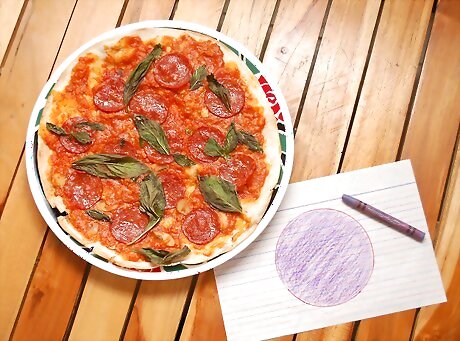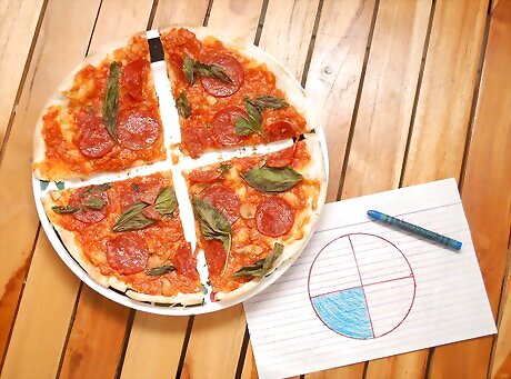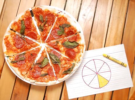 Place the pizza in the middle of a table. To avoid any other distractions and to ensure that the food is the main subject, it's best to have a cleared table prior to the lesson. Have a sheet of paper nearby for visual fraction notes.