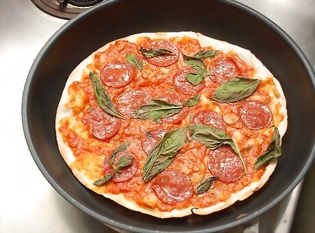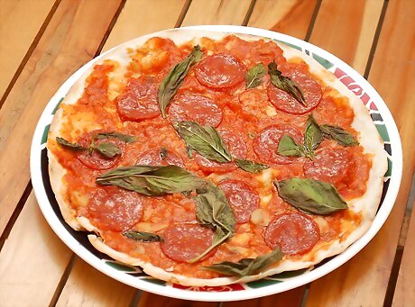 Prepare and cook a pizza with the child. Allow the food to cool down so that it will be easy to touch and handle.