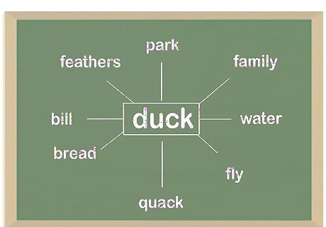 Create word clusters to get your students generating ideas. Give your students a word and have them write it down inside a circle in the middle of a piece of paper. When they’re ready, set a timer for 5-10 minutes and challenge them to surround the word with smaller bubbles containing as many related words as possible. Reassure them that there are no wrong answers—all they’re doing is conditioning their minds to reflexively conjure up ideas they can then work into their essays. If you give your students the word “duck,” for instance, they might end up with words like “water,” “feathers,” “bill,” “bread,” “park,” “quack,” “fly,” and “family.” Word clusters and other forms of free-association also make excellent warm up exercises before you actually get into organization or composition. This exercise will benefit students of all ages and writing levels, from grade school to college.