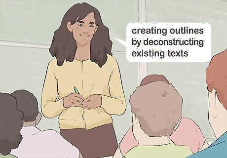 Practice creating outlines by deconstructing existing texts. For this exercise, your students will work in reverse to produce a detailed outline from a finished piece of writing. First, have them read through an example essay to familiarize themselves with the topic and content. Then, task them with dividing the information up into discrete sections, each with a main idea and a bulleted list of subtopics and supporting ideas stemming from the thesis or topic sentence. You can either use the same text you used to pinpoint topic sentences or print off a different batch of examples to keep things fresh and get high school-aged students used to working with different kinds of information. One of the advantages of this exercise is that it allows students to focus exclusively on organizing key information without having to worry about what they’re writing.