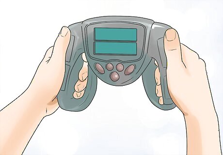 Buy games that involve physical activity. Children love to play, so if you can find toys that get them moving, they can have a lot of fun exercising. Consider both outdoor and indoor opportunities. If you have the financial resources, try buying things like these: Video games like Dance Dance Revolution Indoor trampolines Balls for sports (kickballs, basketballs, baseballs and bats; department stores sell cheap colorful balls that work for different sports) Scooters/skateboards (with the appropriate safety gear) Step counters (challenge them to beat a certain number)