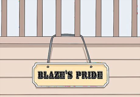 Use your horse’s stable name as the main inspiration. Most horses aren’t called by their show name every day. That is because these names are usually a bit long and impractical. However, you can use the name you typically call your horse by as a good source of inspiration. Think about your horse's stable name and try combining it with descriptive and creative word(s) of your horse's glory in the show ring, your horses personality, or your horse's favorite things to do. For example, if you have a mare called “Autumn,” you could call her “Autumn Glory,” “Autumn Charm,” or “Autumn's Mischief.” If you have a gelding called “Blaze,” you could call him “Blaze's Pride,” or “Copyrighted with a Blaze.”