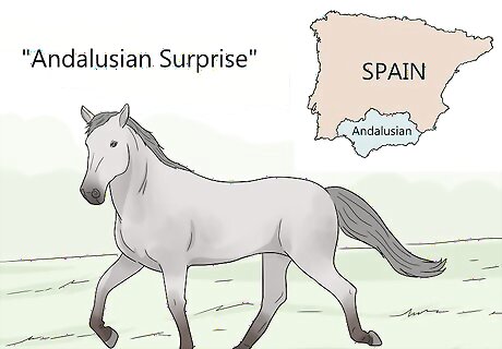 Consider the origins of your horse’s breed. Many horse breed names refer to where in the world that breed comes from. You can use the breed name or the name of the country as inspiration for your horse’s name. For example, an Arabian could have a name that has something to do with an Arabian sheik or the desert. A Mustang could have a name like “Wild” or “Heart of America.” An Andalusian horse could be called something like “Andalusian Surprise” or “Spanish Beauty.” You can also add a bit of the language of that country to the name. For example, if you have a French bred horse, they could be called something that starts with “Le …” (for a male horse) or “La …” (for a female horse).