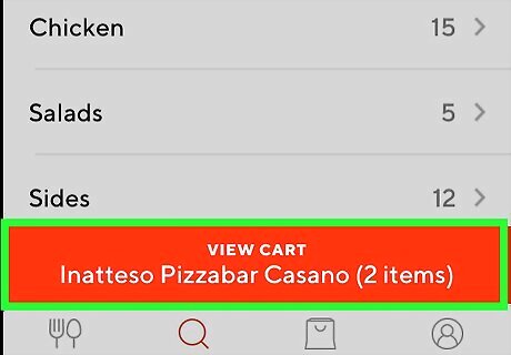 Tap VIEW CART. It’s in the red bar at the bottom of the screen. The contents of your order will appear.