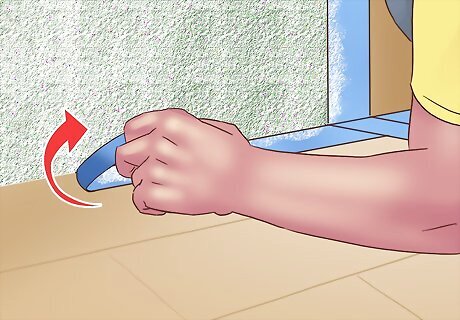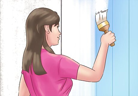 Protect adjacent areas with tape. It’s a good idea to tape up any surfaces or items that are touching or near to the wall. This will protect adjacent surfaces from paint. Apply painter’s tape and press it down with your fingers to secure it in place. Items and surfaces to tape include: Adjacent walls Ceilings and baseboards Window and door casings Switch plates