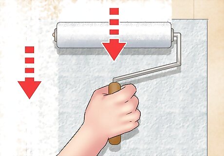 Paint over the tissue paper with the base coat. Once the tissue paper has been rolled flat and into place, grab the roller that you used for the base coat again and apply a thin layer of paint over the tissue paper. Press gently to avoid moving or tearing the paper, and be careful around the edges. A layer of paint on top of the tissue paper will help secure it in place and protect it from damage.