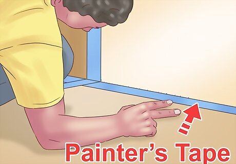 Cover the floor. Paint has a tendency to drip, so protect the floor below the wall you're painting with a large plastic or canvas drop cloth. Tape the edges of the drop cloth to the baseboards if you're worried about the sheet moving around. If there's any large furniture near the wall that you weren't able to move, cover it with the drop cloth to protect it.