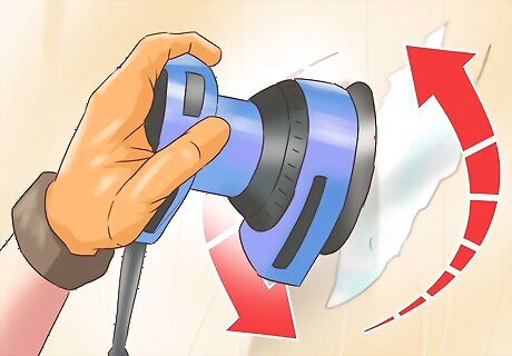 Sand the wall. When the drywall compound is dry, go over the entire wall with 120-grit sandpaper using an orbital sander. This will smooth out the compound, remove excess dirt and grime, and give the primer an even and slightly rough surface to stick to. For small areas and tough to reach corners, use a sanding stone to sand the wall.