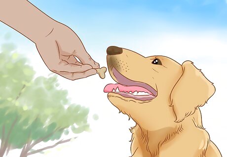 Reward your Golden Retriever for correct behavior. When your dog does its business in the elimination spot, give it a reward. This may be a treat or verbal praise. Provide the praise as soon as it finishes, not when it is back inside the house.
