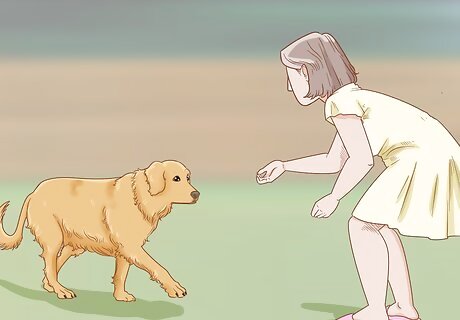 Train your Golden Retriever to come. Teaching a Golden Retriever to come when you call it is important to your dog’s overall behavior. It can help keep it out of trouble and improve its life since you can take it more places. Use positive reinforcement to get your dog to come. It should associate coming to you with praise, treats, or toys. Say the word “come” as you walk backwards. The dog should want to follow you. Say the word once before you move backwards. This helps your dog associate the verbal command with the desired behavior. Keep moving backwards until your dog gets to you. You want the dog to understand that it has to come all the way to you. As soon as your dog makes it to you, give them a treat and lots of praise Add additional distractions, like toys or food, as your Golden Retriever gets better at the command. Make sure to only say the command once. Repeating it makes it lose meaning for the dog. If the dog won’t come to you, try running farther away or tempting it with a treat. As soon as your dog comes to you, give it praise or treats.