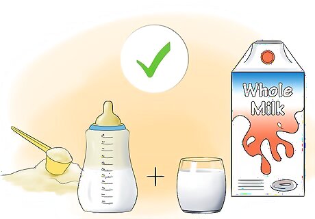 Add cow's milk to other foods. If your baby rejects cow's milk at first, try mixing it with foods he or she enjoys – mashed potatoes, cereals, and soups, for example.