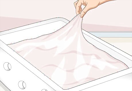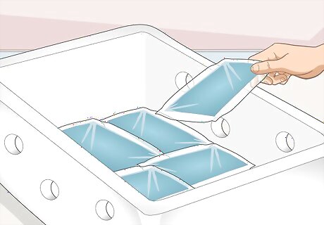 Line the bottom of the cooler with gel freezer packs. Use standard freezer packs or cooling blocks that you would normally use for lunchboxes or cold storage. Make sure the bottom of the cooler is completely lined with the packs so the temperatures stay consistent through the duration of the trip. You can also make your own freezer packs by filling plastic bags with wet sawdust and freezing them. Wrap the gel packs foil or plastic wrap if you don’t want them getting dirty from the crabs.Warning: Avoid using ice since it will melt and harm the crabs if they’re submerged.
