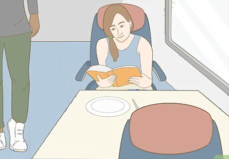 Book a first-class seat if you want more space during the ride. Check the availability of first-class seats for the train ride you want to take since the cabins are usually more spacious and have air conditioning. Try to pre-book a first-class ticket since the train cars have limited and assigned seats that could fill up quickly. Double-check your ticket before boarding the train to make sure you get in the correct cabin. If you have trouble finding the right cabin, ask a conductor or train employee to help you locate it. Typically, train rides last 3–5 hours, but it depends on the style of train and the distance you’re traveling.