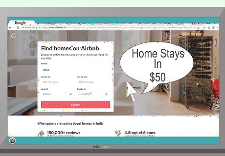 Book an Airbnb for less expensive and more personal accommodations. On Airbnb, individuals list their apartment or house on the website and then rent it out for travellers to book for their vacation. The website is growing rapidly in India, and you can find accommodations for entire apartments or homes for as little as $50 per night. India is quite safe if you apply common-sense safety standards as you would do at home too, so you can also stay at moderately prized guest houses if you are on a longer journey and wish to stick to a budget of $10 to $20 per room.