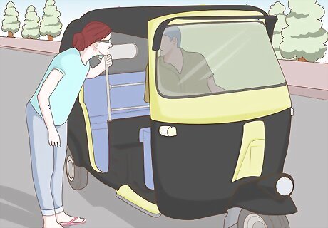 Hail a taxi or auto-rickshaw to get around in the cities and towns. The taxis and auto-rickshaws in India may look old and scary, but they’re the most popular and reliable way to travel short distances. Riding in one is a uniquely Indian experience, and they’re not that expensive. Choose auto-rickshaws only in very dense traffic or in narrow streets for short distances, as auto-rickshaws tend to be more expensive than metered taxis. There is also Uber and a similar company called Ola. After your international arrival when you do not have a SIM card yet, you best book a car from a company called Meru (if in Delhi) or book a prepaid taxi in the arrival hall. Traffic in India tends to be very bad, especially during commuting hours in the mornings and evenings. Be patient and allot extra time to get to your destination. In most cases, your driver will speak some English; it is better not to ask drivers for any recommendation, as they get a commission at places they bring you to.