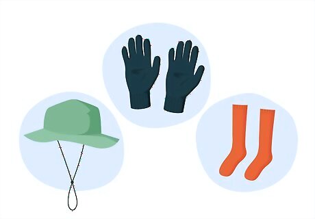 Protect your head, hands, and feet with extra layers. Keep your skin covered and protected with long socks. Invest a few new pairs if you don’t have a lot of long socks lying around your home. Additionally, toss a hat and a pair of gloves into your suitcase, which will keep you protected from the sun and wind.