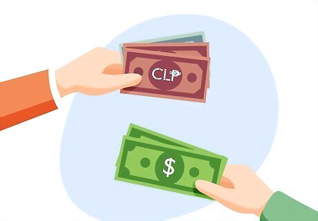 Exchange your money for Chilean or Argentinian pesos. Visit a travel center to transfer your home currency into Chilean and/or Argentinian pesos, depending on where you’re visiting. For easier transactions, you can also use your credit card—just be sure to let your bank know when you plan on leaving the country so your account isn’t flagged for fraud. A day of food and snacks in Chile can cost up to 25,000 pesos. Keep in mind that 1 Chilean peso translates to about 0.09 Argentinian pesos.