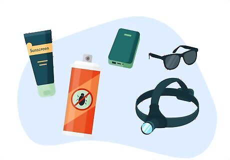 Stay protected with sunscreen, bug spray, sunglasses, and a headlamp. Pack a bottle of sunscreen, along with bug spray—as you hike and sightsee, you’ll definitely run into a lot of bugs and direct sunlight. For extra protection and safety, bring a pair of sunglasses with you, along with a headlamp. You may also want to bring a portable battery for your phone while you’re out hiking and sightseeing.