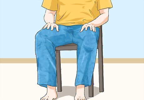 Rest your knee. Start by sitting down to take any weight off of your knee. Sit on a comfortable chair or lie down with your knee elevated above your waist on a pillow or another, higher chair. Elevating your knee will help the swelling to go down. Try not to move your knee at all or be up on your feet. Ask a friend or relative to help you reach for items and prepare any food so you do not have to stand or walk.