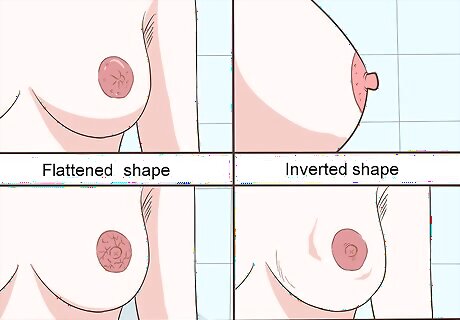 Notice any change to the skin on or around the nipple. If you have Paget’s Paget’s disease of the breast, you may realize that your nipple is a flattened or inverted shape instead of round. You may also experience changes to your normal skin around your nipple. The nipple area may have flaky skin, or that the skin is crusty in places. The skin may become thickened around or on the nipple.