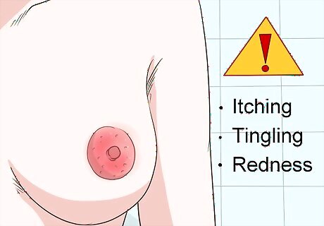 Monitor for irritation of the areola. If you have Paget’s disease of the breast, you may first think you have dermatitis or eczema. You may experience itching or tingling of the nipple or areola. Along with this, you may notice redness in that area.