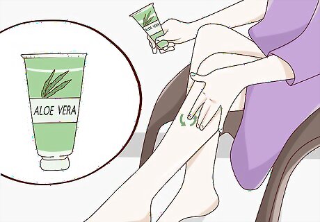 Apply aloe vera to the skin to minimize pain if necessary. If your chafing has moved from irritating to painful, grab some aloe vera. Rub a pea-sized drop of aloe vera directly into your skin using smooth, circular motions. The menthol in aloe vera will soothe the pain from the sensitive skin.Tip: Some people really dislike the minty feeling of aloe vera. If it doesn’t help relieve your pain, go ahead and stick with the zinc oxide or petroleum jelly. Reapply the aloe vera whenever you feel the pain returning. Typically, the effects of aloe vera wear off after 1-2 hours.
