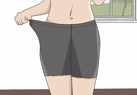 Shed a few pounds to prevent skin-on-skin contact. You have a higher chance of getting chafed skin if you’re overweight, especially when it comes to the thighs. Exercise regularly and eat a balanced diet of grains, fruits, vegetables, and lean proteins. The best way to lose weight is to burn more calories than you are consuming, so limit portion size and move around as much as possible.Tip: Talk to your doctor about good weight loss strategies. There is no one-size-fits-all when it comes to a weight loss program. Find something you enjoy, like cycling or sports, to stay motivated and happy. Aim to eat healthy, well-balanced meals and avoid the fast food and sugary drinks. If you do drink a ton of sugary drinks, replacing soda and sports drinks with water is a great way to shed a little weight without breaking out the exercise equipment.
