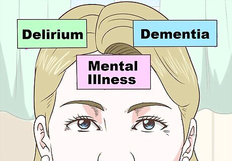 Differentiate between delirium, dementia, and mental illness. Delirium is often mistakenly diagnosed as dementia because their symptoms are similar. Dementia is characterized by a decline in two or more brain functions and is a symptom of a condition, such as Alzheimer's disease or stroke. Delirium can also be confused for mental illness, especially when the underlying illness is difficult to diagnose. Those who have delirium typically have a significantly harder time maintaining focus and attention than those with dementia. Delirium symptoms tend to fluctuate significantly, while those with dementia tend to have relatively consistent memory and thinking skills throughout the day. Those with delirium usually have additional symptoms that are associated with their underlying illness, while those with dementia do not. Mental illness and delirium can usually be distinguished by considering how old the person is and whether their symptoms came on suddenly. An older person that gets sudden symptoms is likely to have delirium instead of mental illness. However, those with dementia are likely to get delirium. A patient could have both conditions and they should be treated separately. EXPERT TIP Alex Dimitriu, MD Alex Dimitriu, MD Sleep Medicine & Psychiatry Professional Alex Dimitriu, MD is the Owner of Menlo Park Psychiatry and Sleep Medicine, a clinic based in the San Francisco Bay Area with expertise in psychiatry, sleep, and transformational therapy. Alex earned his Doctor of Medicine from Stony Brook University in 2005 and graduated from the Stanford University School of Medicine's Sleep Medicine Residency Program in 2010. Professionally, Alex has dual board certification in psychiatry and sleep medicine. Alex Dimitriu, MD Alex Dimitriu, MD Sleep Medicine & Psychiatry Professional Delirium is similar to a dream state. Delirium, in many ways, is the invasion of dreams into your waking life. Unfortunately, for some people, it becomes hard to tell where your dreams end and where reality begins.