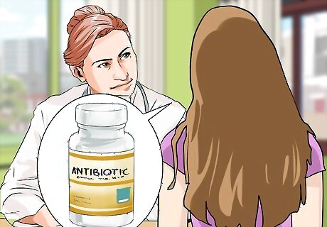 Ask the doctor for an antibiotic if an infection is present. You may not be able to prevent your child from scratching, and excessive scratching may cause the area to get cut. Cuts often lead to infections. If this happens, it is important that you talk with your child's doctor about getting an appropriate antibiotic. Signs of infection can include persistent fever, warmth in the eczema-affected area, and atypical sores in the affected area. An area that is just not improving with usual treatment may have an underlying infection.