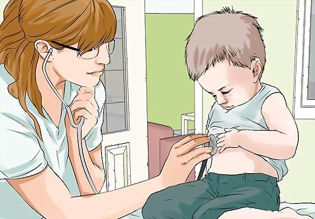 Consult with your child's pediatrician before treating suspected eczema. The cause of eczema's can be difficult to determine, and it can be difficult to diagnose. Relying on the expertise of medical professionals is the best way to ensure that your child is receiving the best care for his condition. There is no test that can confirm the existence of eczema, so a physical examination and the consideration of hereditary and environmental factors are usually utilized to determine its presence. Your child's pediatrician may refer you to an allergist. Eczema isn't an allergy, but allergies can be a trigger for outbreaks. You may also be referred to a dermatologist for examination and care recommendations.