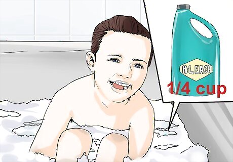 Consider trying "bleach baths." While it may sound extreme, some studies indicate that bleach baths can reduce the symptoms of eczema in older children. Also, even more so than regular baths, they can help reduce infection-causing bacteria. The bleach needs to be extremely diluted, however. You should add no more than 1/4 cup (60 ml) of bleach to a half-tub of warm water. Bleach baths are usually used only once or twice a week. You should always consult with your doctor to determine whether or not the treatment is safe for your child based on his or her age and overall health. Try to keep the bleach water out of the child's eyes.