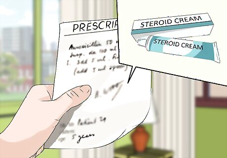 Ask your child's doctor for a prescription steroid. When over-the-counter hydrocortisone cream is ineffective, the next step is to apply a stronger steroid cream or ointment. These products do require a prescription, though. A steroid cream or ointment should be applied directly to the inflamed skin for as long as the doctor instructs. Usually, this application occurs right after a bath but before the application of a moisturizer. You may need to apply it twice a day. Your doctor will usually recommend using the topical steroid for no more than two weeks at a time. Always follow your doctor's recommendations on how to use prescription medications. In severe cases, the doctor may also prescribe an oral steroid. Most children will not need oral steroids, and the treatment is not usually used in young kids. Some older children may need an oral steroid if their skin no longer improves with the use of topical treatment.