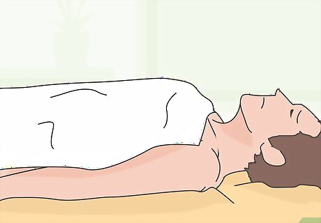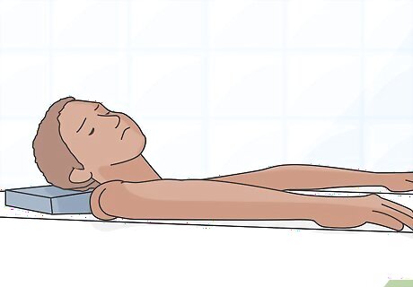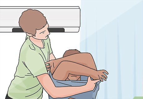 Cover the patient's body with a damp sheet or spray them with cool water. Find a sheet that is big enough to cover the person from their neck to their toes and wet it in the sink. Cover the patient with the wet sheet and fan them with a notebook. If you do not have a sheet, use a water bottle to spray the patient's body with cool water. You can also apply water to the patient using a sopping wet sponge or cloth.