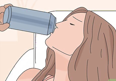 Rehydrate the patient by giving fluids if possible. Sports drinks are ideal because they provide fluids as well as salt that the body will need to recover. If you do not have sports drinks you can make your own by adding 1/4 teaspoon of salt and a tablespoon of sugar for every quart of water. Have the patient drink about half a cup of the drink every 15 minutes. Make sure that the person does not drink too quickly. Tell them to drink it slowly. Do not pour liquids into a patient’s mouth if they don’t seem alert enough to swallow. You might cause them to choke, adding another layer of danger to an already critical situation. If you have neither sports drinks nor salted water, regular cool water will be fine. Don’t offer the patient energy drinks or soft drinks. Caffeine disrupts the body’s ability to regulate its temperature, so these drinks will only make the situation worse.