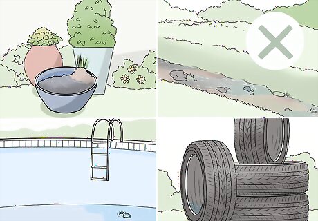 Avoid puddles and standing water. Any stagnant water can be a breeding ground for mosquitoes. Especially if it has recently rained, be on the lookout for pools of water that may be infested. Children playing in or around these areas are more likely to get bitten, even if they're wearing insect repellant. If your child enjoys cooling off in the water on a hot day, encourage them to play in moving water, such as a stream or creek, or take them to a pool with water that has been treated.