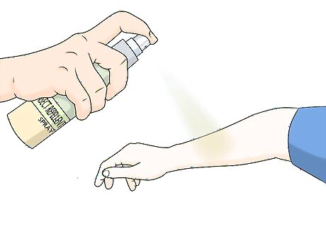 Spray your child with a children's insect repellant. Insect repellants formulated for children are available at discount stores, drug stores, or supermarkets, as well as online. When used correctly, these products will keep must biting and stinging insects away from your child. It may be easier to spray your child's clothing rather than spraying the child's skin, especially if they move around a lot. Make sure you reapply the insect repellant if your child goes swimming, or has been running around a lot and gotten sweaty.