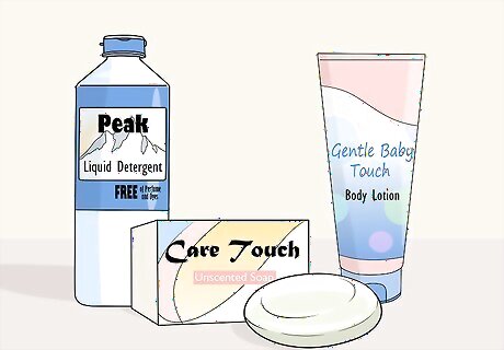 Use unscented soaps, detergents, and lotions. If your child goes outside smelling like fruit or flowers, they are likely to attract stinging or biting insects. Even if you can't smell the scent, insects still can. Avoid fruity or floral perfumes for yourself as well if you're going to be outside with your children. Insects you attract with your scent may also bite or sting your child.