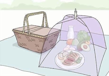 Keep food covered when eating outside. If you're having a picnic or enjoying a snack outside with your child, food that is left sitting out in the open will attract insects. If your child spills anything, make sure to clean up the spill as quickly as possible and keep your child away from that general area. Pay particular attention to sweet foods and drinks, especially fruits and juices, as the sugar attracts more insects as well as bees.