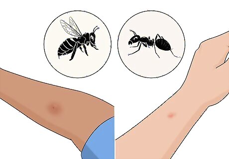 Try to determine the type of insect that bit your child. Most insects don't have venom and won't cause a severe allergic reaction that requires immediate medical treatment. However, if your child has been bitten or stung by a bee, yellow jacket, wasp, or fire ant, an allergic reaction is possible. A bee sting is typically swollen and may feel hard and warm to the touch. Bees leave their stingers in the wound, while wasps keep their stingers and can sting more than once. Fire ant bites typically look like painful red bumps at first. They may become blisters or pimples within a few hours after the initial encounter.